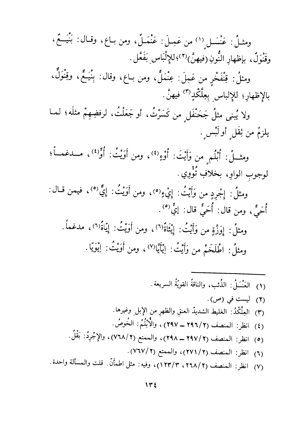وَمثل عنسل من عمل عنمل وَمن بَاعَ وَقَالَ بنيع وقنول بِإِظْهَار النُّون فِيهِنَّ للإلباس بِفعل
