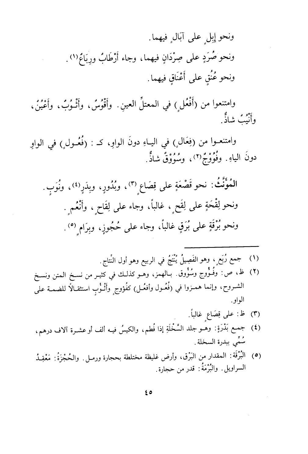 وامتنعوا من أفعل فِي المعتل الْعين وأقوس وأثوب وأعين وأنيب شَاذ