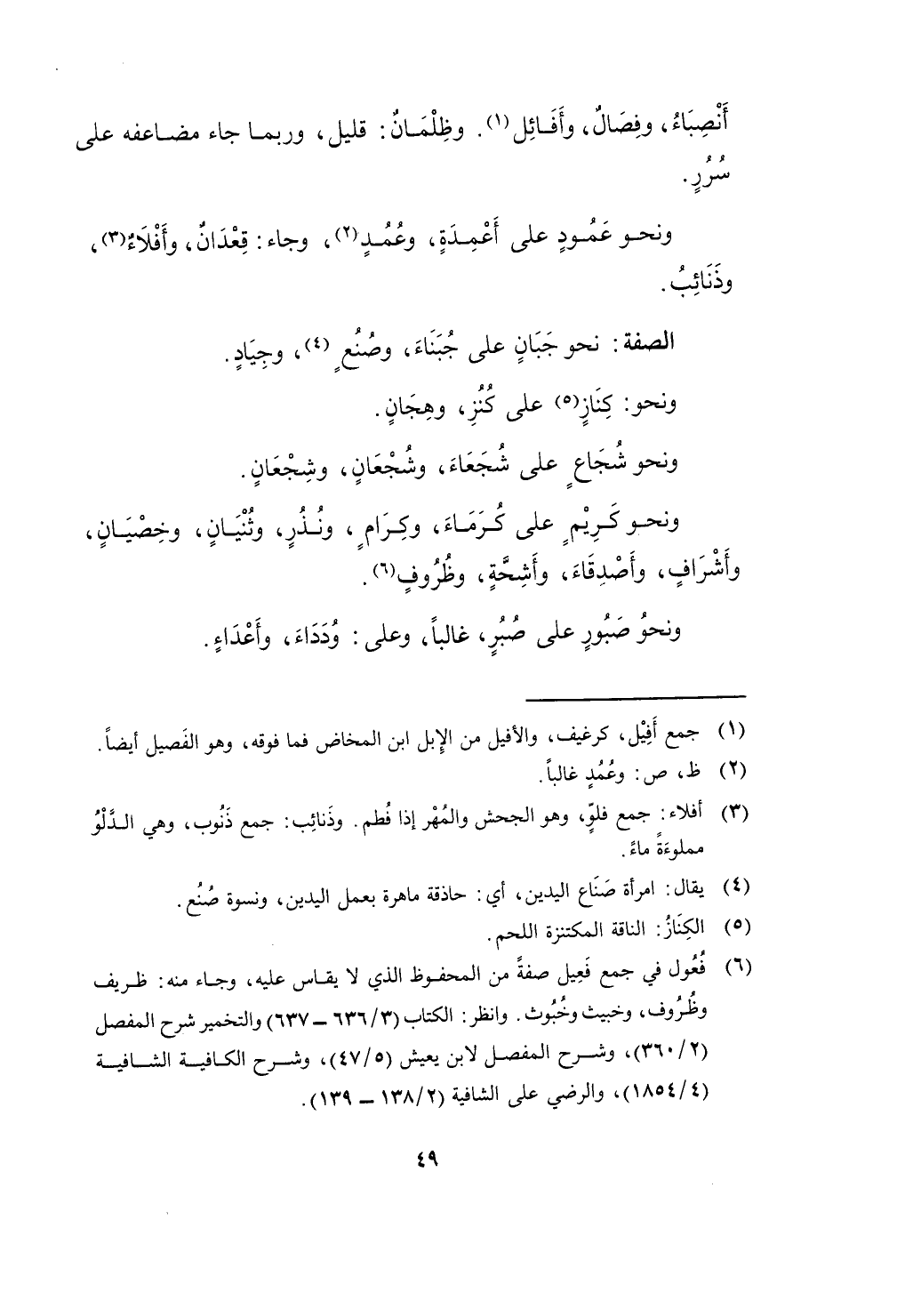أنصباء وفصال وأفائل وظلمان قَلِيل وَرُبمَا جَاءَ مضاعفه على سرر