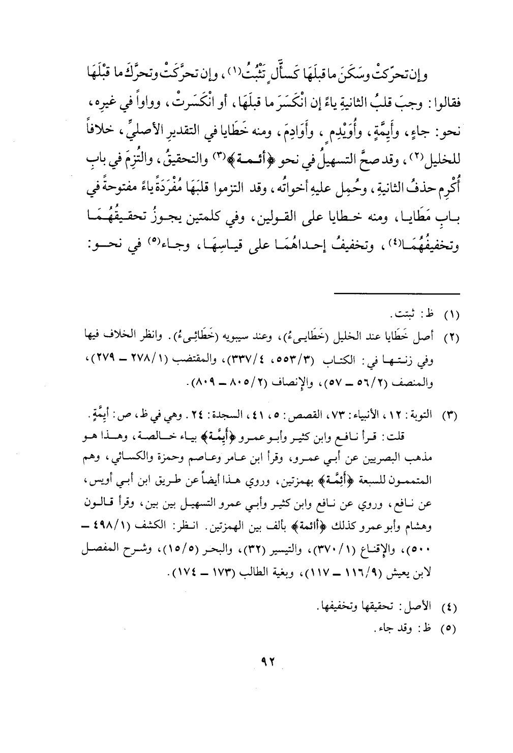 وَإِن تحركت وَسكن مَا قبلهَا كسأل تثبت وَإِن تحركت وتحرك مَا قبلهَا فَقَالُوا وَجب قلب الثَّانِيَة يَاء إِن انْكَسَرَ مَا قبلهَا أَو انْكَسَرت وواوا فِي غَيره نَحْو جَاءَ وأيمة وأويدم وأوادم وَمِنْه خَطَايَا فِي التَّقْدِير الْأَصْلِيّ خلافًا للخليل وَقد صَحَّ التسهيل فِي نَحْو {أَئِمَّة} وَالتَّحْقِيق وَالْتزم فِي بَاب أكْرم حذف الثَّانِيَة وَحمل عَلَيْهِ أخواته وَقد التزموا قَلبهَا مُفْردَة يَاء مَفْتُوحَة فِي بَاب مطايا وَمِنْه خَطَايَا على الْقَوْلَيْنِ وَفِي كَلِمَتَيْنِ يجوز تحقيقهما وتخفيفهما وَتَخْفِيف إِحْدَاهمَا على قياسها وَجَاء فِي نَحْو