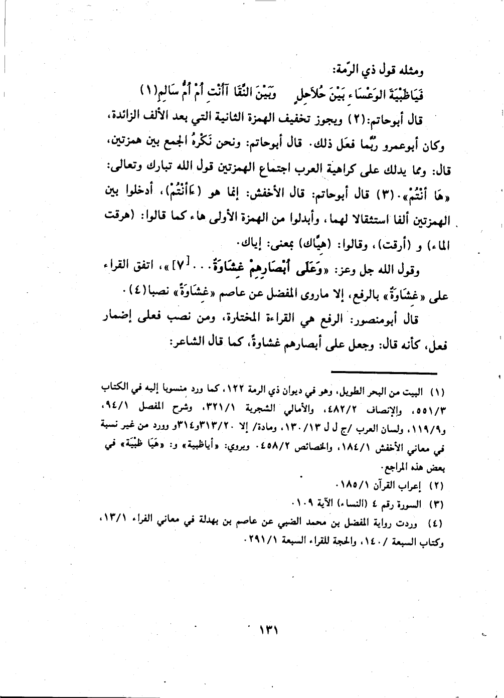 قال: ومما يدلك على كراهية العرب اجتماع الهمزتين قول الله تبارك وتعالى: