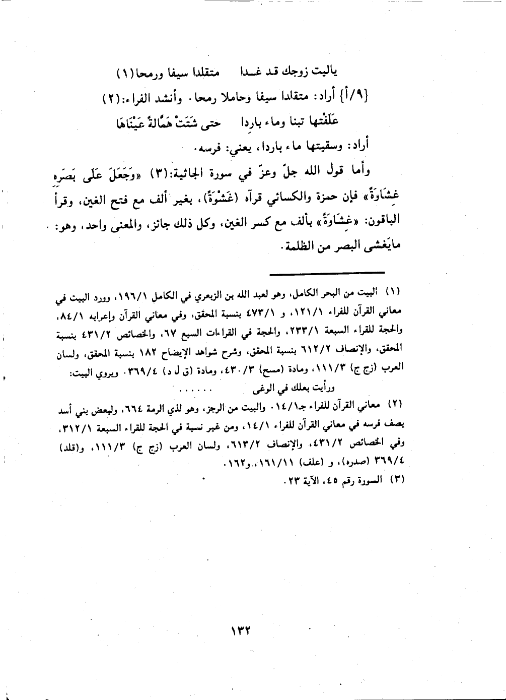 فإن حمزة والكسائي قرآ (غَشَوَةً) بغير ألف مع فتح الغين، وقرأَ