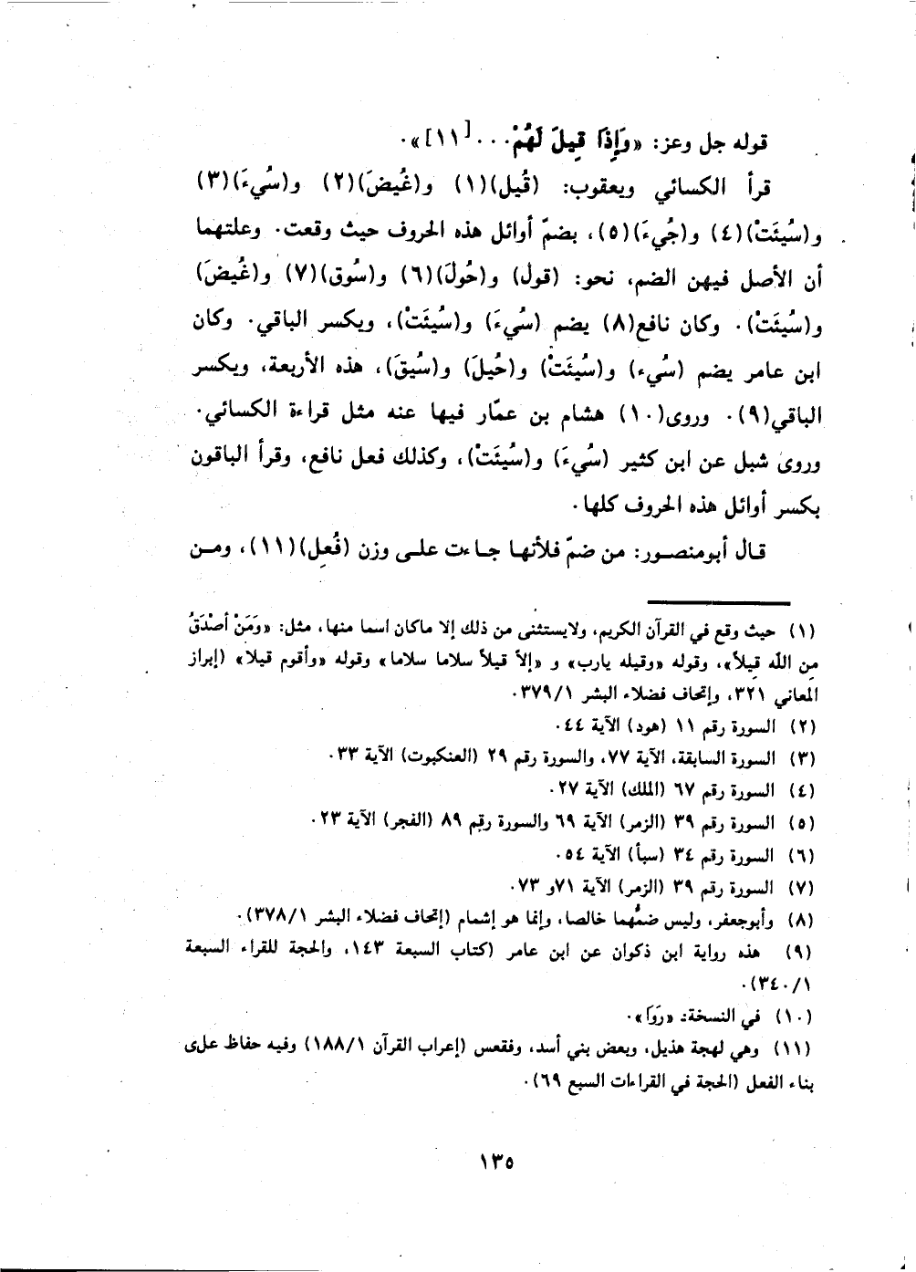 وكان ابن عامر يضم (سُىء) و (سُيئَت) و (حُيلَ) و (سُيئَ) ، هذه الأربعة، ويكسر الباقي.