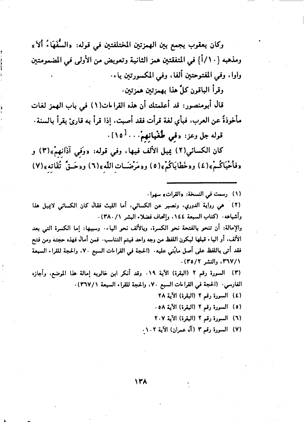 وكان يعقوب يجمع بين الهمزتين المختلفتين في قوله: (السُّفَهَاءُ أَلَا)