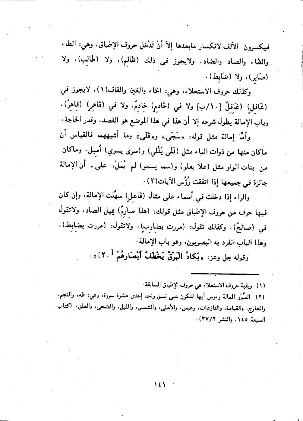 وباب الإمالة يطول شرحه إلا أَن هذا في هذا الموضع هو القصد، وقدر الحاجة.