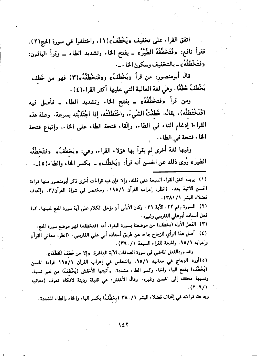 فقرأ نافع: (فَتَخَطفُهُ الطير) - بفتح الخاء وتشديد الطاء - وقرأ الباقون: