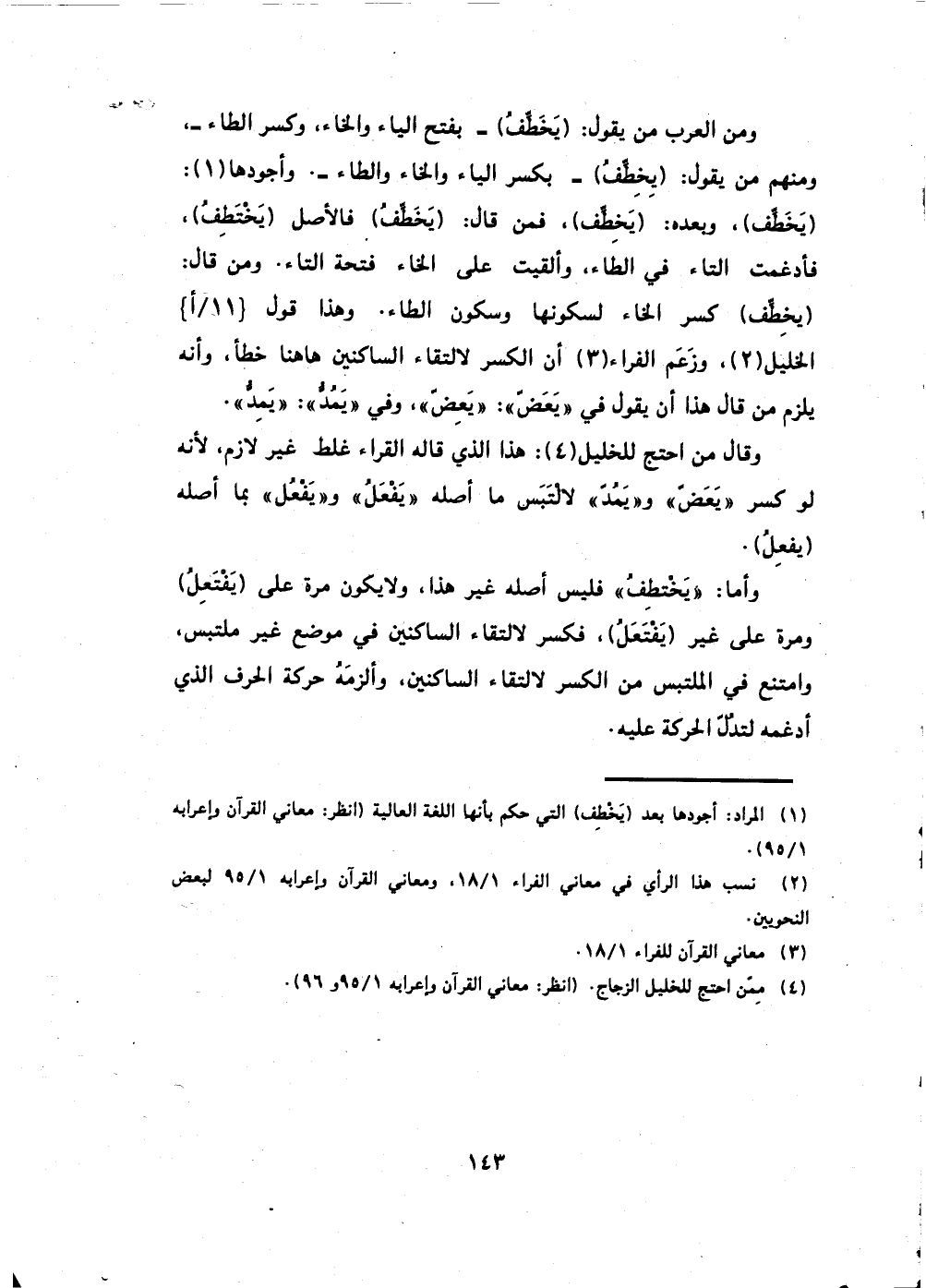 الخليل، وزَعَم الفراء أن الكسر لالتقاء الساكنين ها هنا خطأ، وأنه