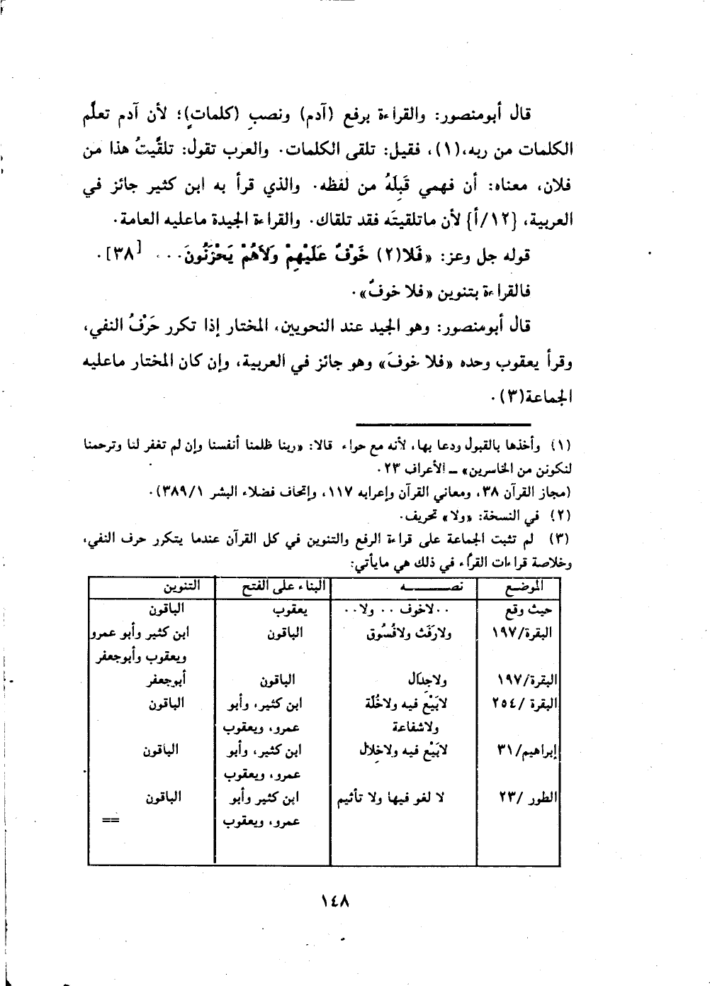 قال أبو منصور: والقراءة برفع (آدم) ونصبِ (كلمات) ؛ لأن آدم تعلم