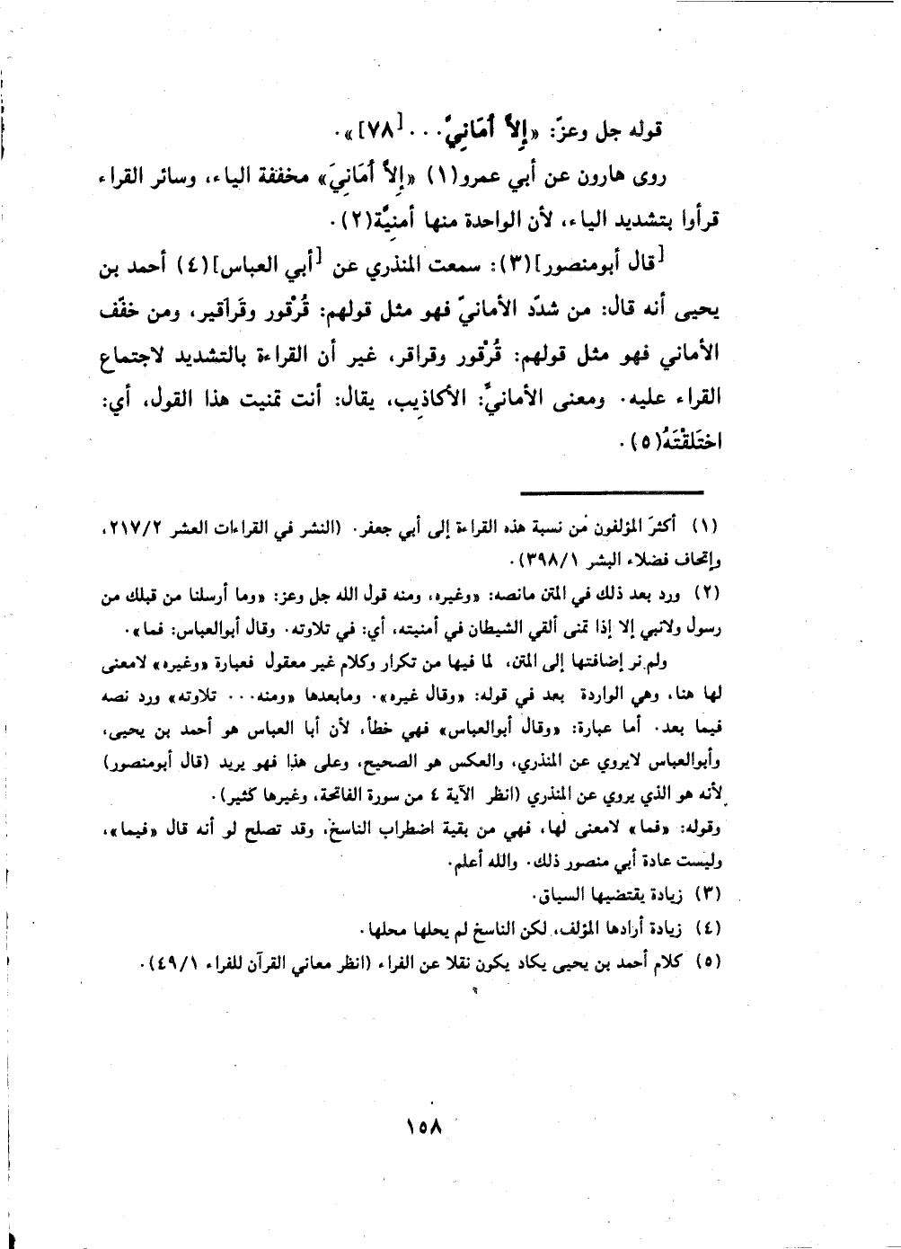 يحيى أنه قال: من شدد الأماني فهو مثل قولهم: قُرقور وقَراقير، ومن خفف
