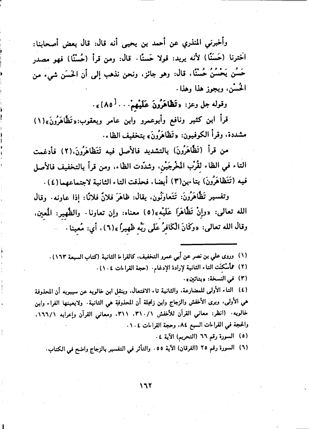 من قرأ (تَظَّاهَرُونَ) بالتشديد فالأصل فيه تَتَظاهَرُونَ، فأدغمت