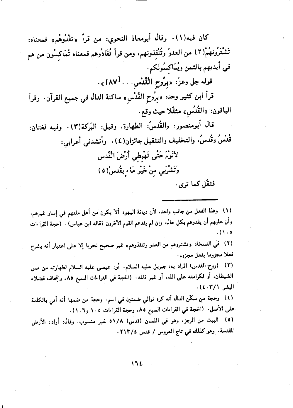وقرأ الباقون: (القُدُسِ) مثقلا حيث وقع.
