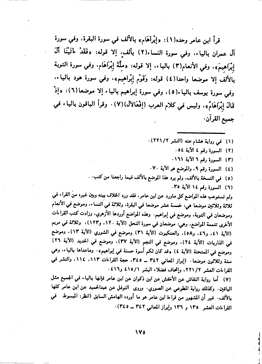 قرأ ابن عامر وحده: (إِبْرَاهَامَ) بالألف في سورة البقرة، وفي سورة