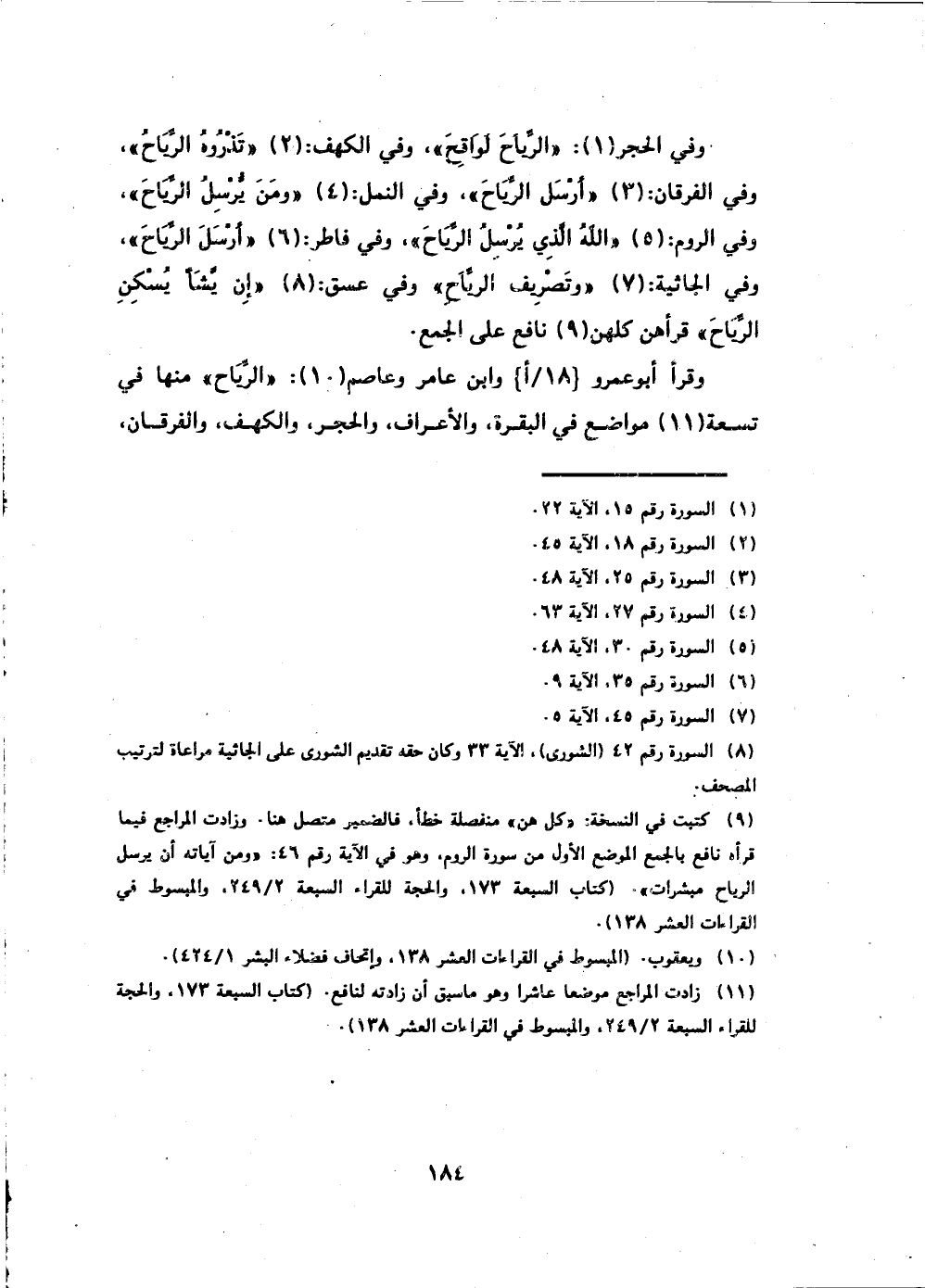 وفي الحجر: (الرِّيَاحَ لَوَاقِحَ) ، وفي الكهف: (تَذْرُوهُ الرِّيَاحُ) ،