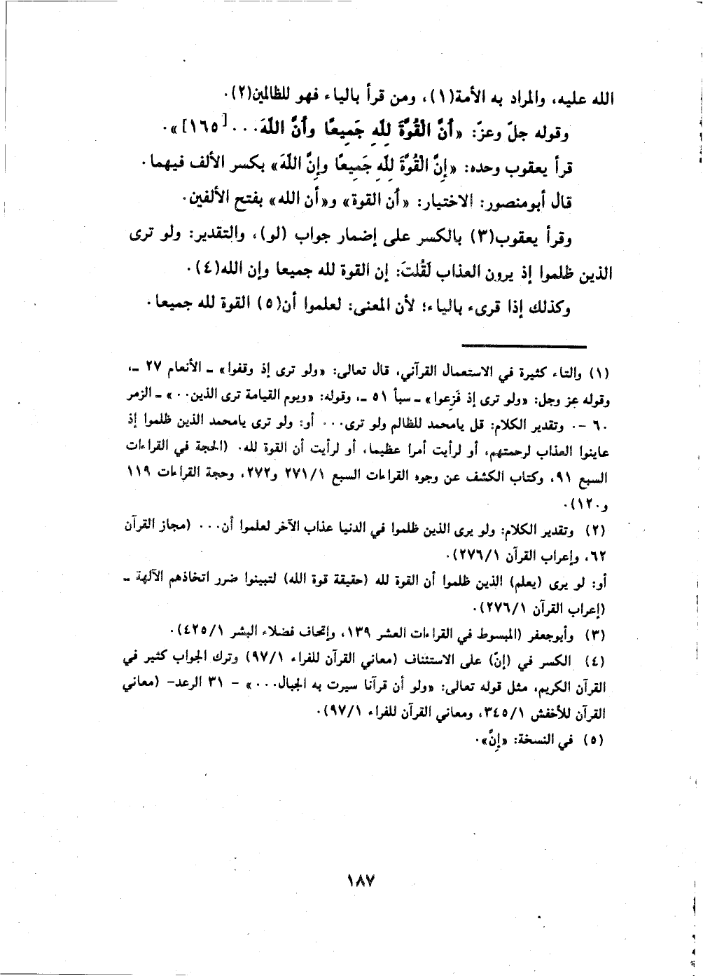 ْوقوله جلَّ وعزَّ: (أَنَّ الْقُوَّةَ لِلَّهِ جَمِيعًا وَأَنَّ اللَّهَ ... (165) .