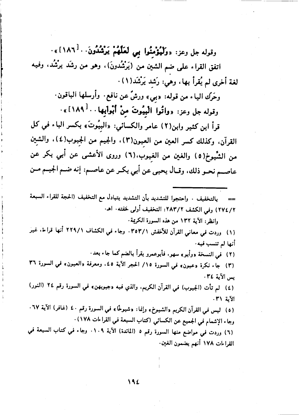 القرآن، وكذلك كسر العين من العِيون، والجيم من الجِيوب، والشِين