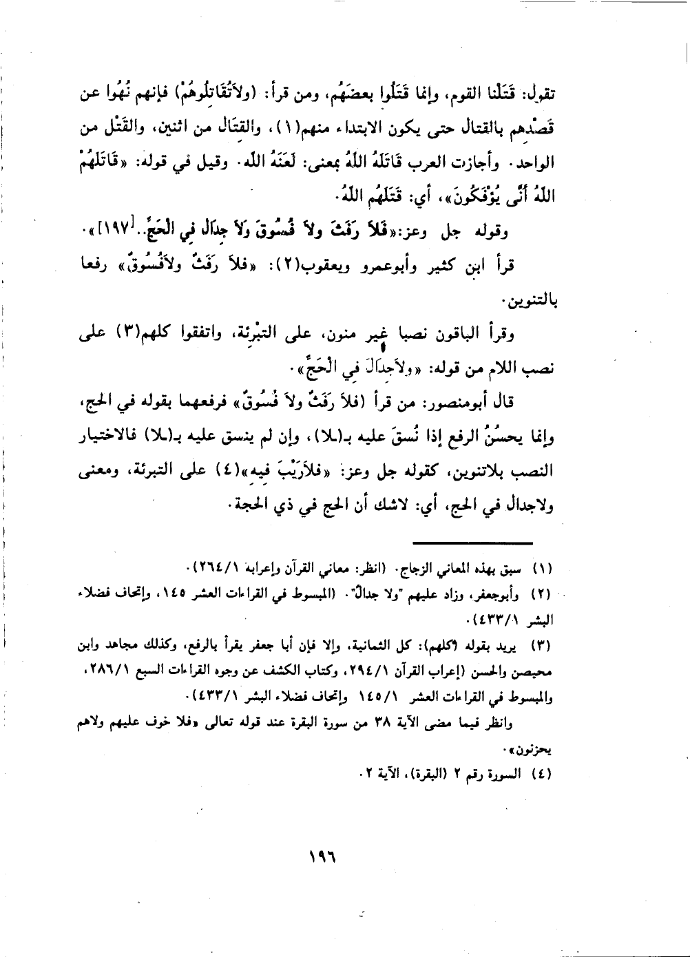 قال أبو منصور: مَنْ قَرَأَ (فَلَا رَفَثٌ وَلَا فُسُوقٌ) فرفعهما بقوله في الحج،