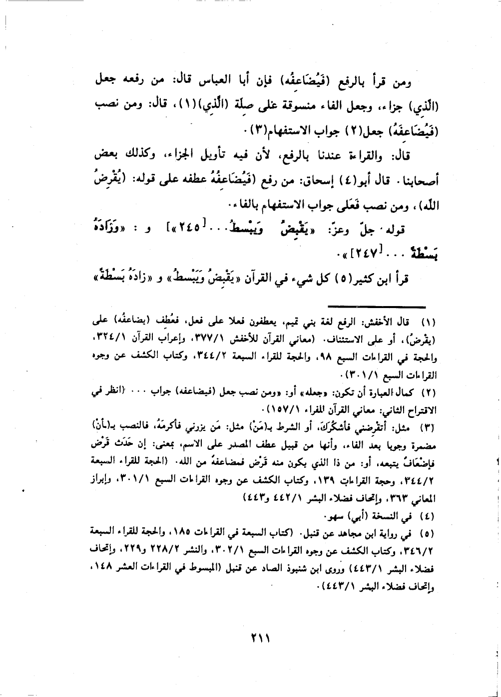 قال أبو إسحاق: من رفع (فَيُضَاعِفُهُ) عطفه على قوله: (يُقرِضُ الله) ،