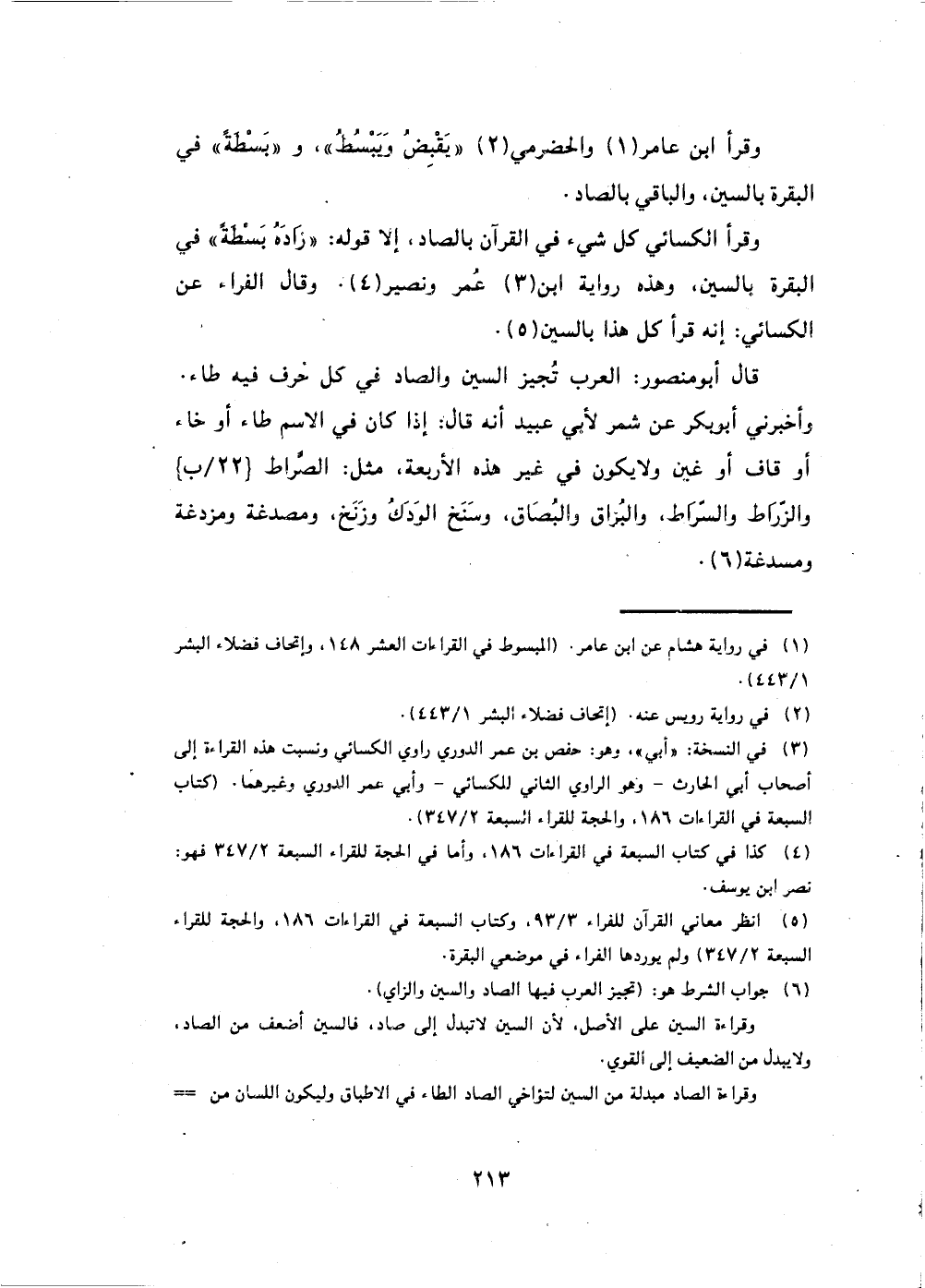 وقرأ ابن عامر والحضرمي (يَقْبِضُ وَيَبسُطُ) ، و (بَسْطةً) في البقرة بالسين، والباقي بالصاد.