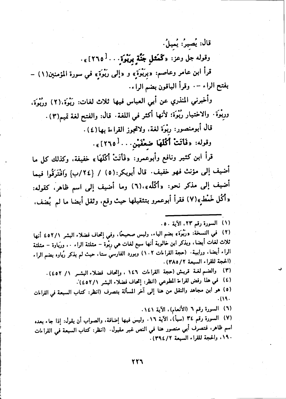 قرأ ابن عامر وعاصم: (بِرَبْوَةٍ) و (إِلى رَبْوَةٍ) في سورة المؤمنين بفتح الراء.