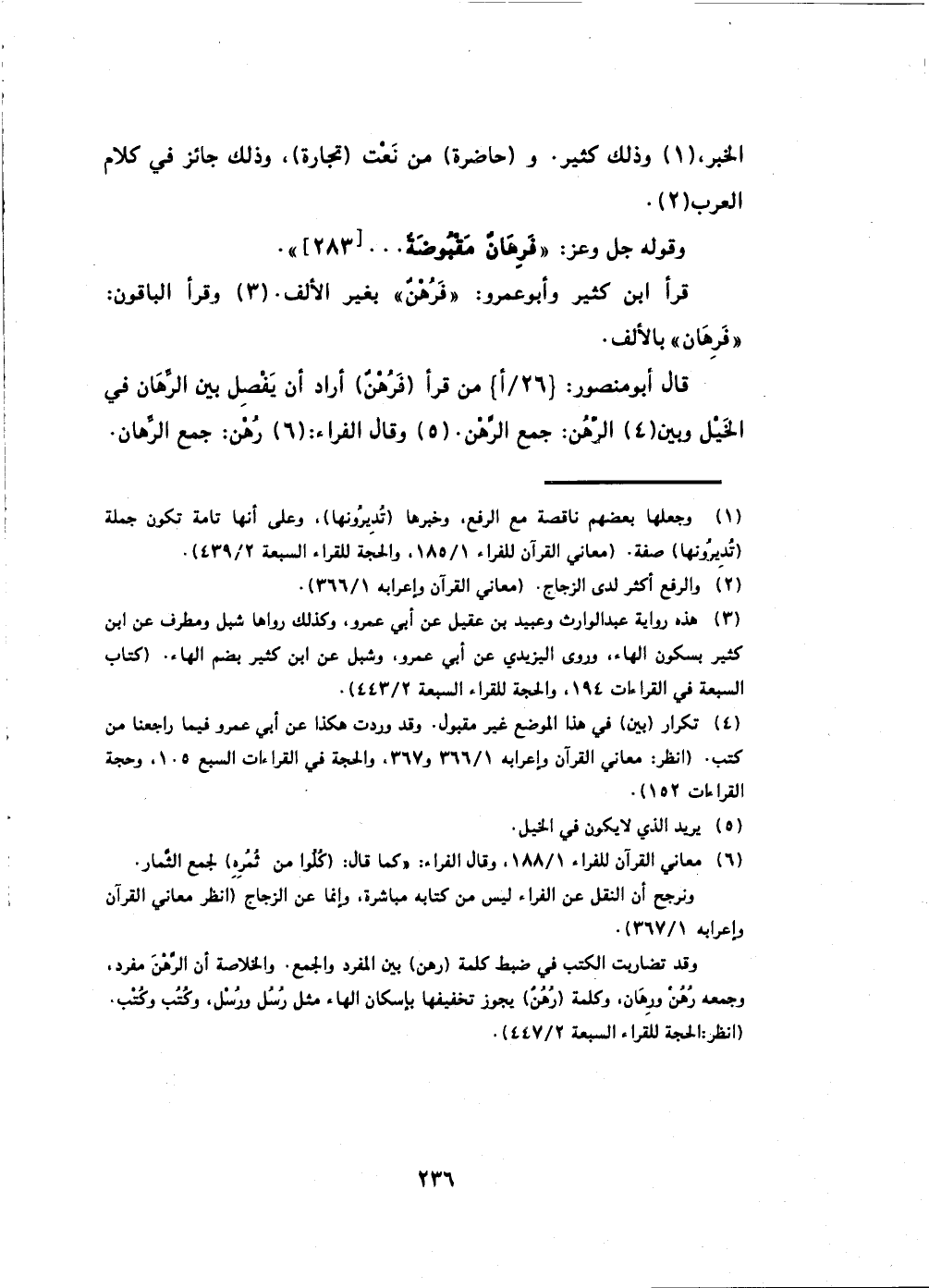 قرأ ابن كثير وأبو عمرو: (فَرُهْنٌ) بغير الألف.