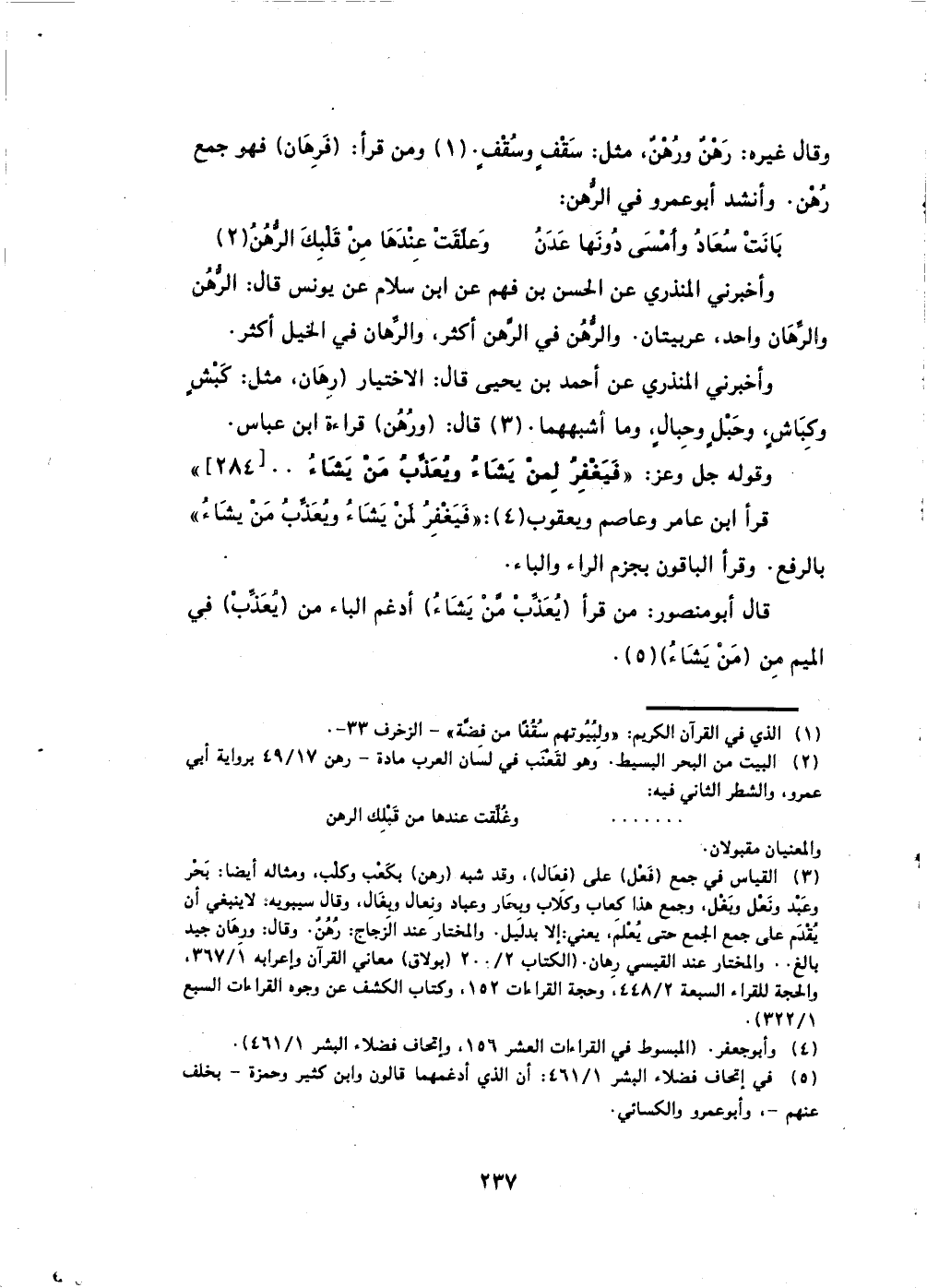 وأخبرني المنذري عن الحسن بن فهم عن ابن سلام عن يونس قال: الرُّهُن
