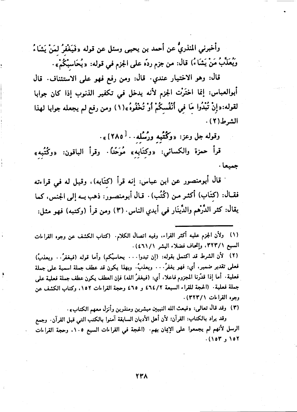 قال أبو العباس: إنما اختَرْت الجزم لأنه يدخل في تكفير الذنوب إذا كان جوابا لقوله: (وَإِنْ تُبْدُوا مَا فِي أَنْفُسِكُمْ أَوْ تُخْفُوهُ)