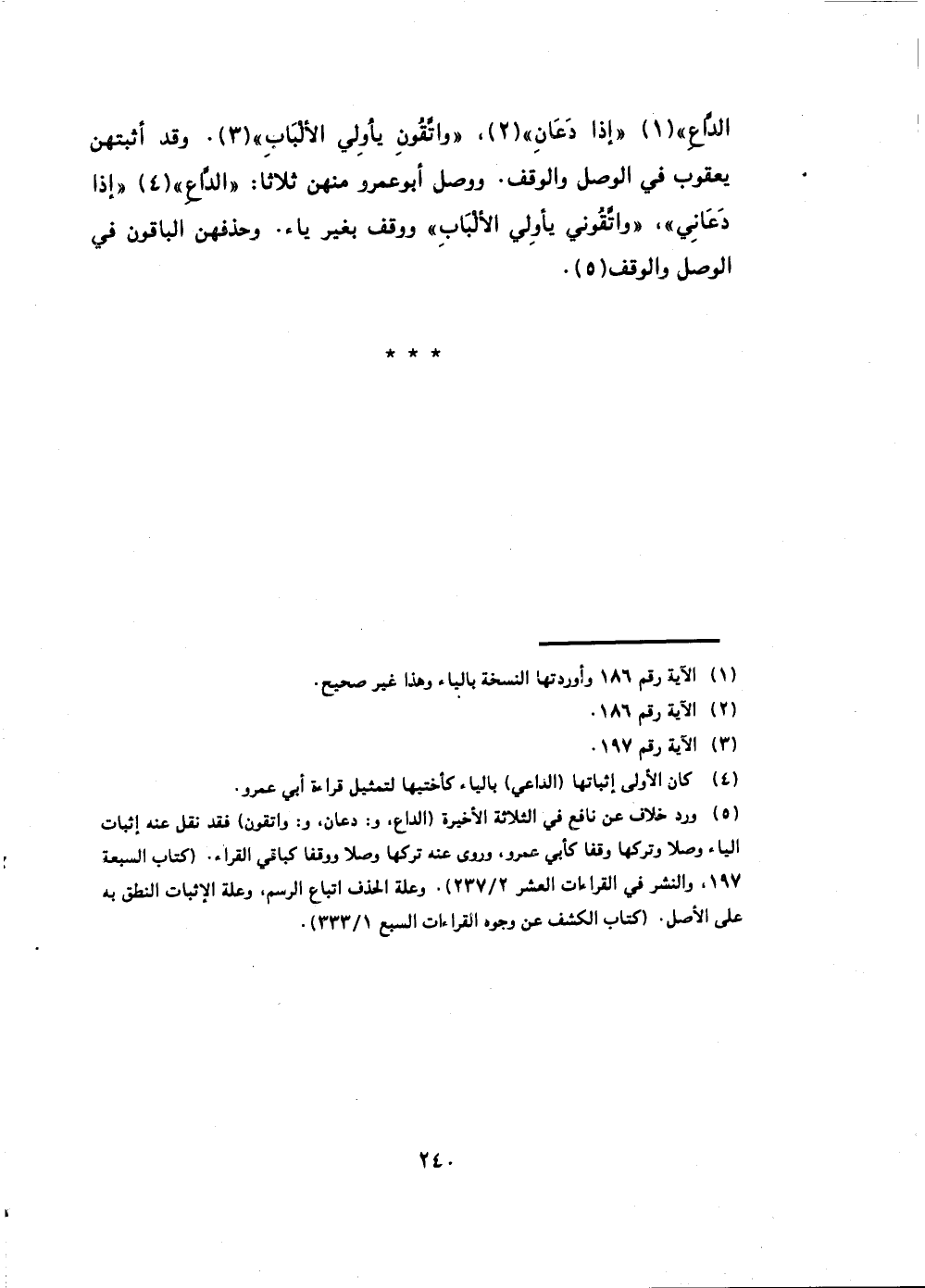 ووصل أبو عمرو منهن ثلاثا: (الدَّاعِ إِذَا دَعَانِ (186)