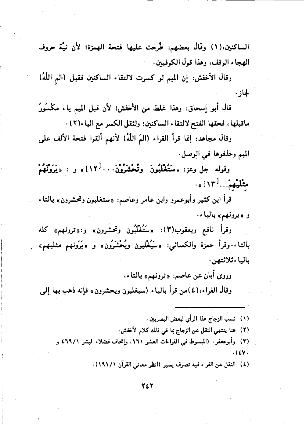 وقال الفراء: مَنْ قَرَأَ بالياء (سيغلبون ويحشرون) فإنه ذهب بها إلى