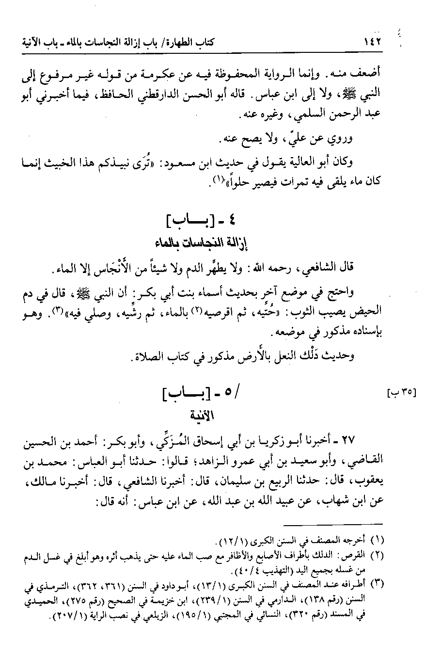 واحتج في موضع آخر بحديث أسماء بنت أبي بكر : أن النبي صلى الله عليه وسلم ، قال في دم الحيض يصيب الثوب : حتيه ، ثم اقرصيه بالماء ، ثم رشيه ، وصلي فيه . وهو بإسناده مذكور في موضعه.