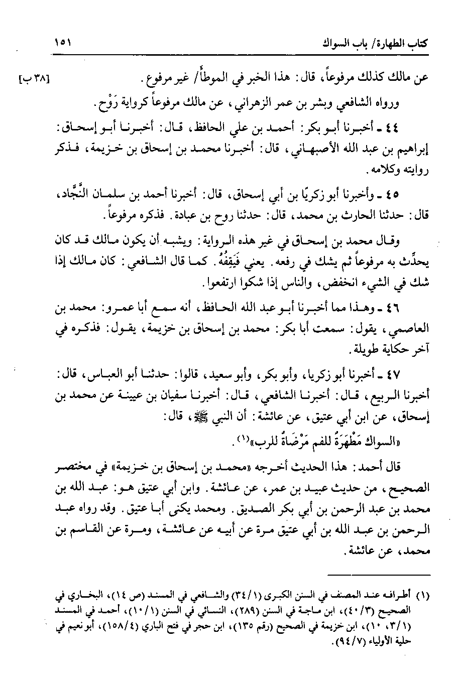 44 - أخبرنا أبو بكر : أحمد بن علي الحافظ ، قال : أخبرنا أبو إسحاق : إبراهيم بن عبد الله الأصبهاني ، قال : أخبرنا محمد بن إسحاق بن خزيمة ، فذكر روايته وكلامه.