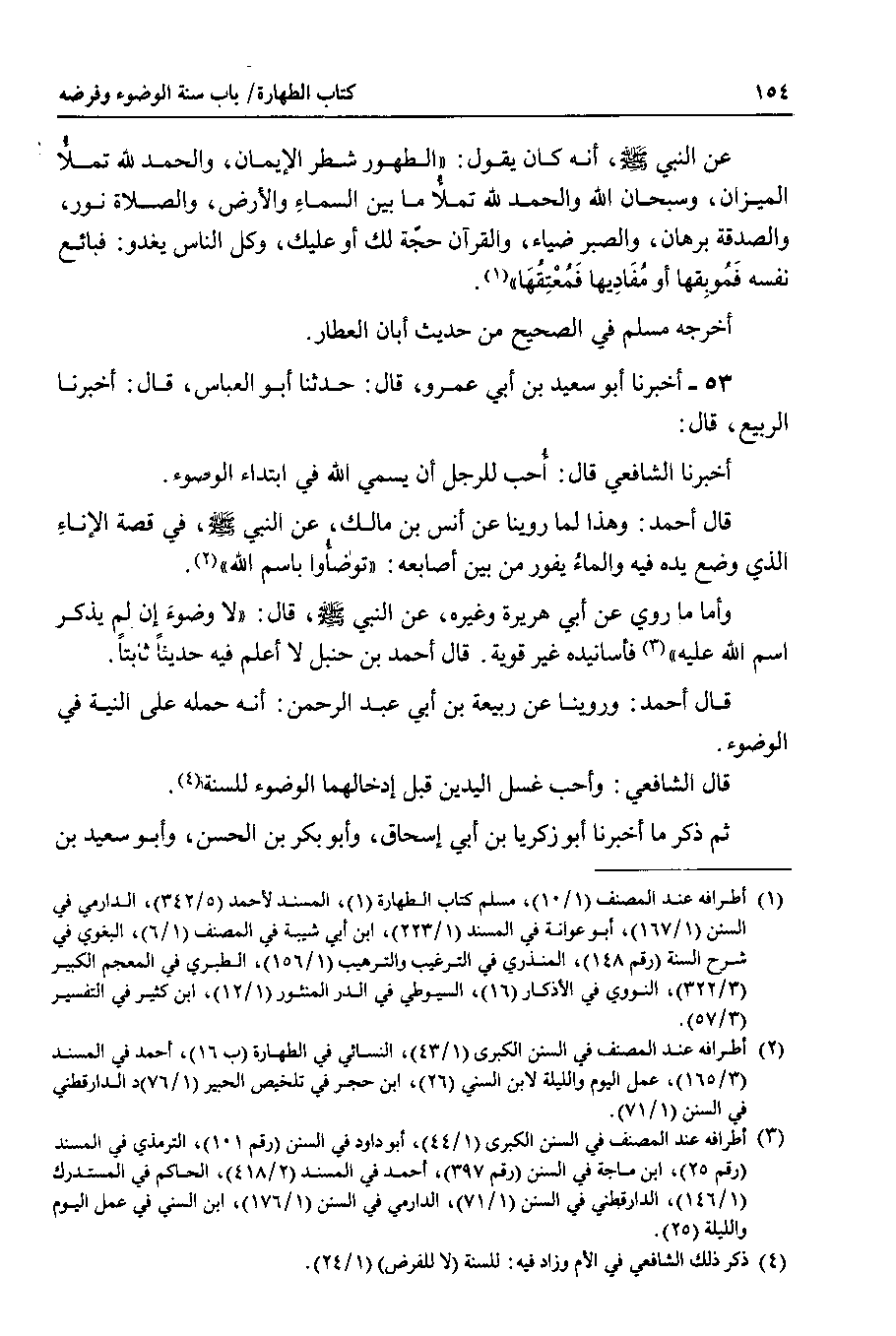 عن النبي صلى الله عليه وسلم ، أنه كان يقول : الطهور شطر الإيمان ، والحمد لله تملأ الميزان ، وسبحان الله والحمد لله تملأ ما بين السماء والأرض ، والصلاة نور ، والصدقة برهان ، والصبر ضياء ، والقرآن حجة لك أو عليك ، وكل الناس يغدو : فبائع نفسه فموبقها أو مفاديها فمعتقها.