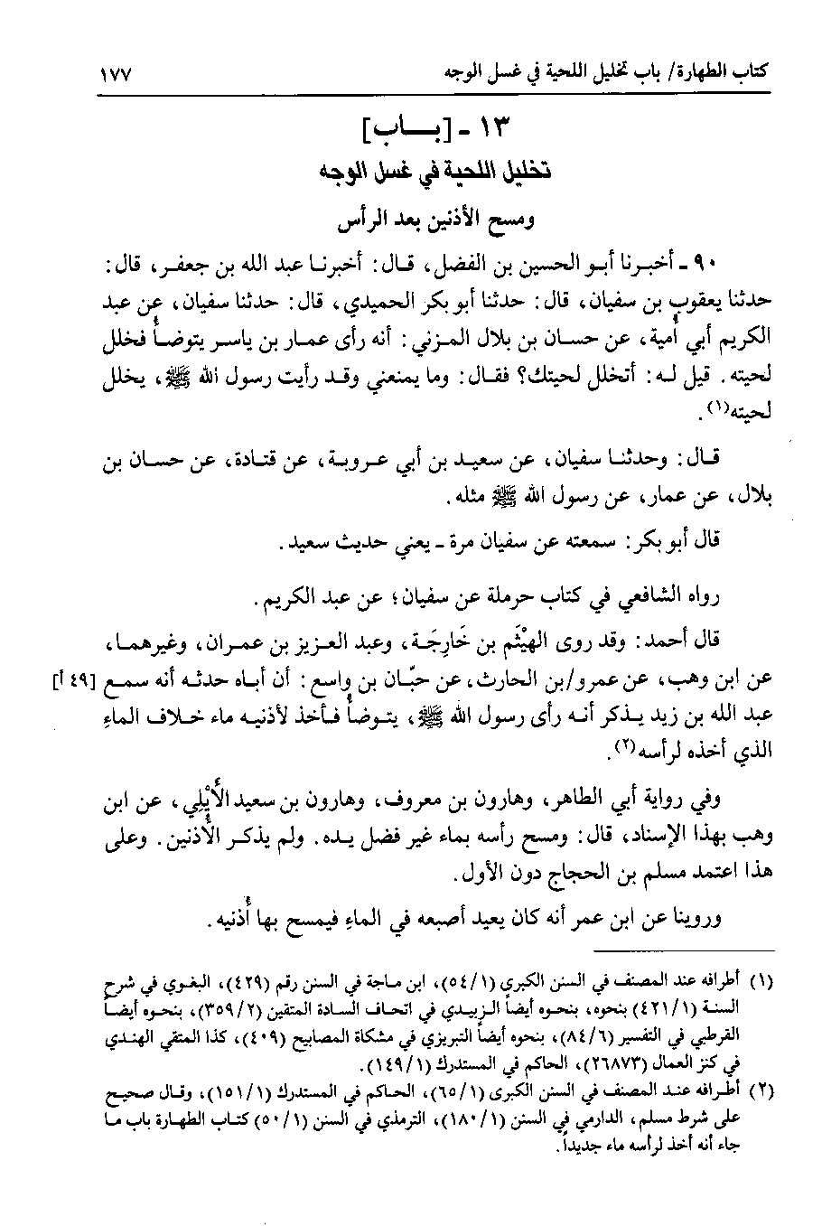 13 - باب تخليل اللحية في غسل الوجه ومسح الأذنين بعد الرأس