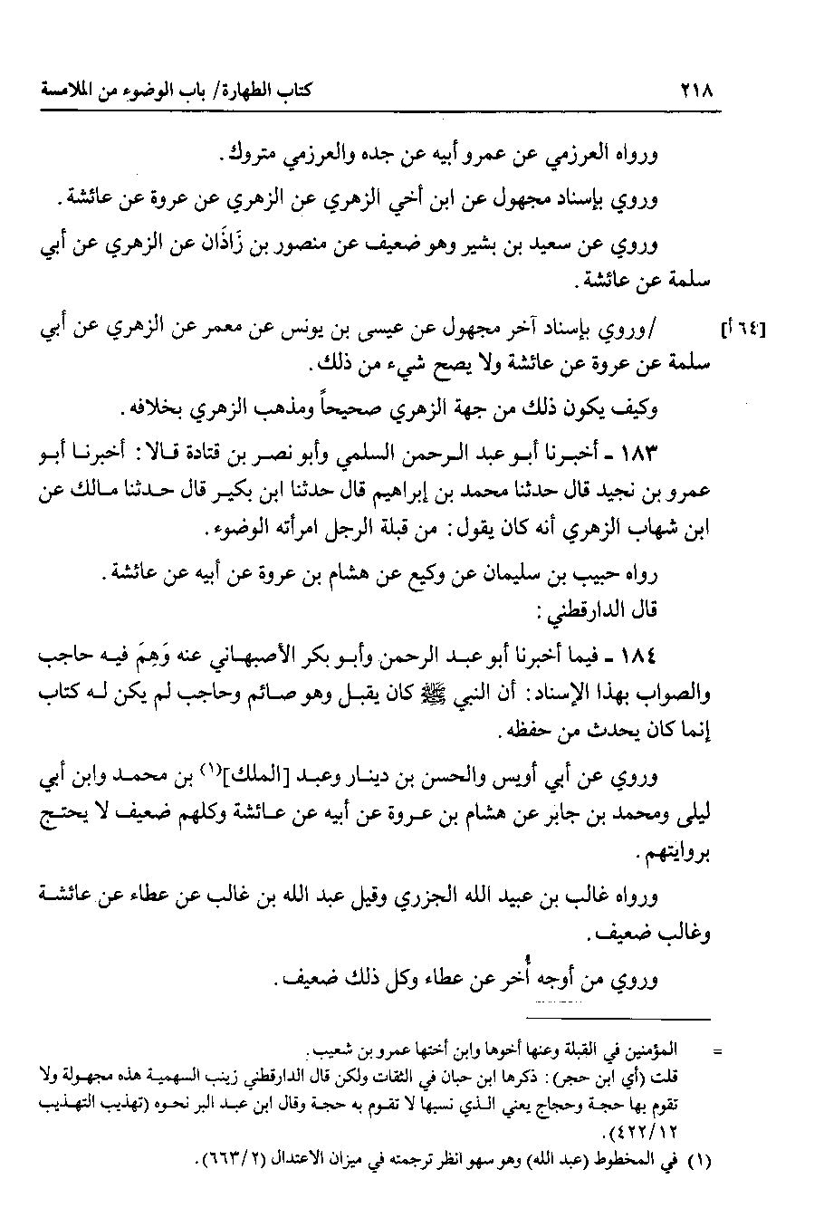 183 - أخبرنا أبوعبد الرحمن السلمي وأبو نصر بن قتادة قالا : أخبرنا أبو عمرو بن نجيد قال حدثنا محمد بن إبراهيم قال حدثنا ابن بكير قال حدثنا مالك عن ابن شهاب الزهري أنه كان يقول : من قبلة الرجل امرأته الوضوء.