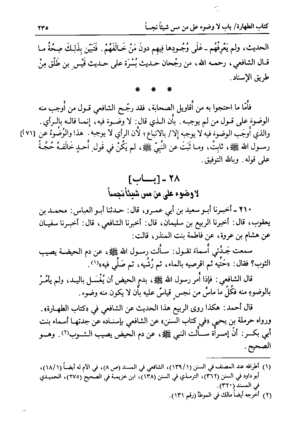 الحديث ، ولم يعرفهم - على وجودها فيهم دون من خالفهم فتبين بذلك صحة ما قال الشافعي ، رحمه الله ، من رجحان حديث بسرة على حديث قيس بن طلق من طريق الإسناد.
