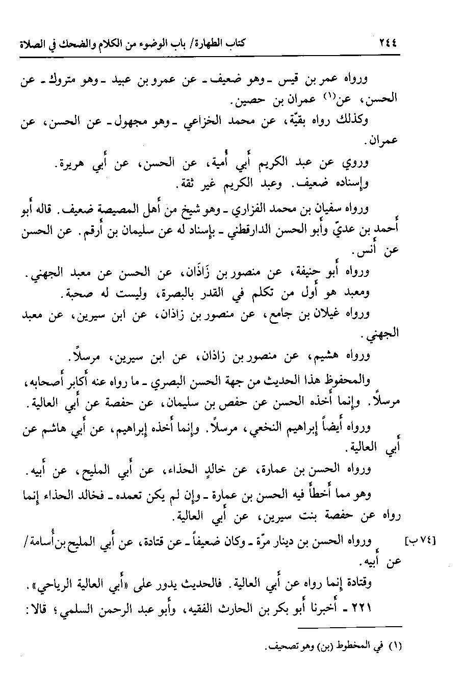 ورواه عمر بن قيس - وهو ضعيف - عن عمرو بن عبيد - وهو متروك - عن الحسن ، عن عمران بن حصين.