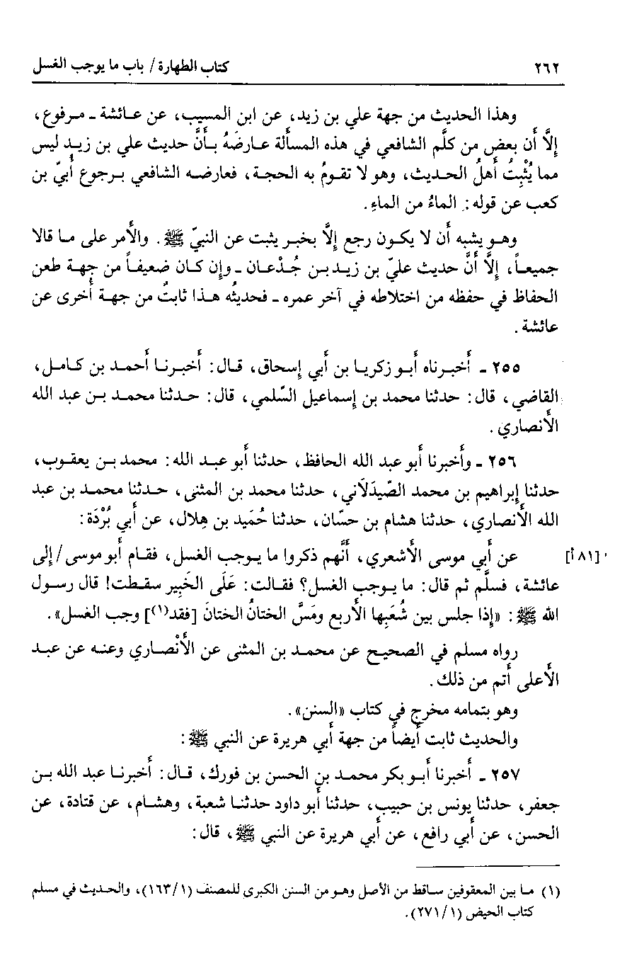 وهذا الحديث من جهة علي بن زيد ، عن ابن المسيب ، عن عائشة - مرفوع ، إلا أن بعض من كلم الشافعي في هذه المسألة عارضه بأن حديث علي بن زيد ليس مما يثبت أهل الحديث ، وهو لا تقوم به الحجة ، فعارضه الشافعي برجوع أبي بن كعب عن قوله : الماء من الماء.