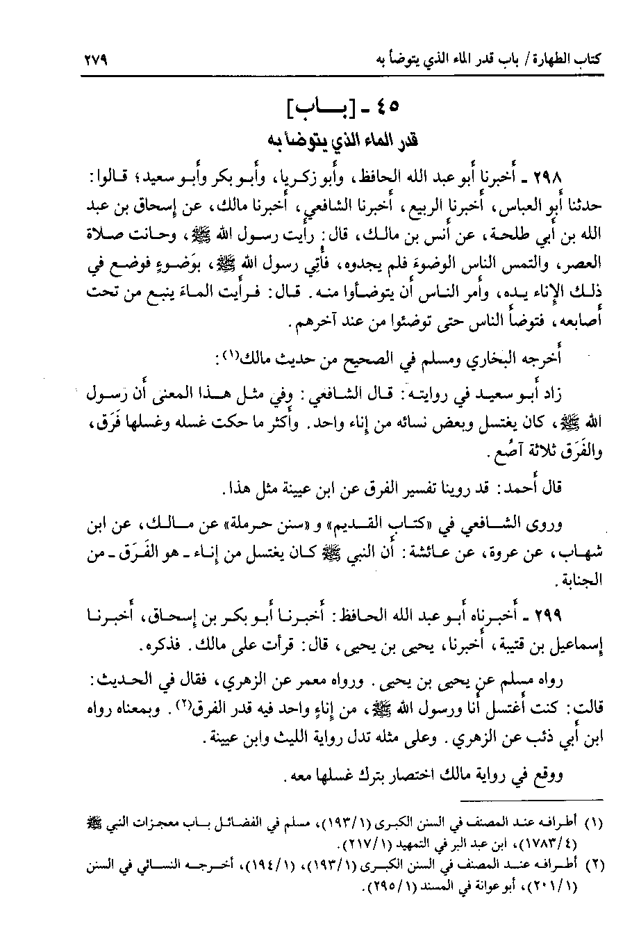 298 - أخبرنا أبو عبد الله الحافظ ، وأبو زكريا ، وأبو بكر وأبو سعيد ؛ قالوا : حدثنا أبو العباس ، أخبرنا الربيع ، أخبرنا الشافعي ، أخبرنا مالك ، عن إسحاق بن عبد الله بن أبي طلحة ، عن أنس بن مالك ، قال : رأيت رسول الله صلى الله عليه وسلم ، وحانت صلاة العصر ، والتمس الناس الوضوء فلم يجدوه ، فأتي رسول الله صلى الله عليه وسلم ، بوضوء فوضع في ذلك الإناء يده ، وأمر الناس أن يتوضأوا منه . قال : فرأيت الماء ينبع من تحت أصابعه ، فتوضأ الناس حتى توضئوا من عند آخرهم.