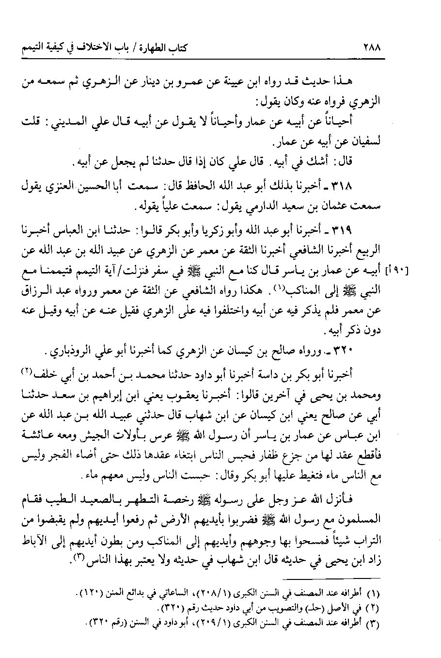 319 - أخبرنا أبو عبد الله وأبو زكريا وأبو بكر قالوا : حدثنا ابن العباس أخبرنا الربيع أخبرنا الشافعي أخبرنا الثقة عن معمر عن الزهري عن عبيد الله بن عبد الله عن أبيه عن عمار بن ياسر قال كنا مع النبي صلى الله عليه وسلم في سفر فنزلت آية التيمم فتيممنا مع النبي صلى الله عليه وسلم إلى المناكب . هكذا رواه الشافعي عن الثقة عن معمر ورواه عبد الرزاق عن معمر فلم يذكر فيه عن أبيه واختلفوا فيه على الزهري فقيل عنه عن أبيه وقيل عنه دون ذكر أبيه.
