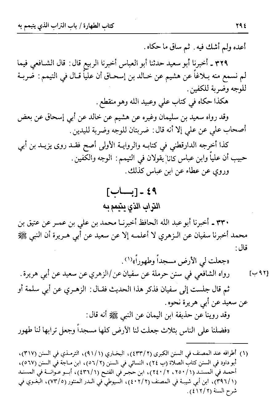 330 - أخبرنا أبو عبد الله الحافظ أخبرنا محمد بن علي بن عمر عن عتيق بن محمد أخبرنا سفيان عن الزهري لا أعلمه إلا عن سعيد عن أبي هريرة أن النبي صلى الله عليه وسلم قال : جعلت لي الأرض مسجدا وطهورا.