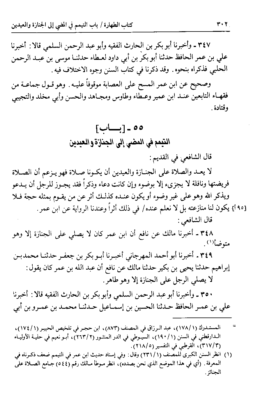 قال الشافعي 348 - أخبرنا مالك عن نافع أن ابن عمر كان لا يصلي على الجنازة إلا وهو متوضأ.