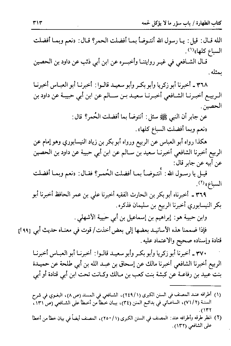 368 - أخبرنا أبو زكريا وأبو بكر وأبو سعيد قالوا : أخبرنا أبو العباس أخبرنا الربيع أخبرنا الشافعي أخبرنا سعيد بن سالم عن ابن أبي حبيبة عن داود بن الحصين.