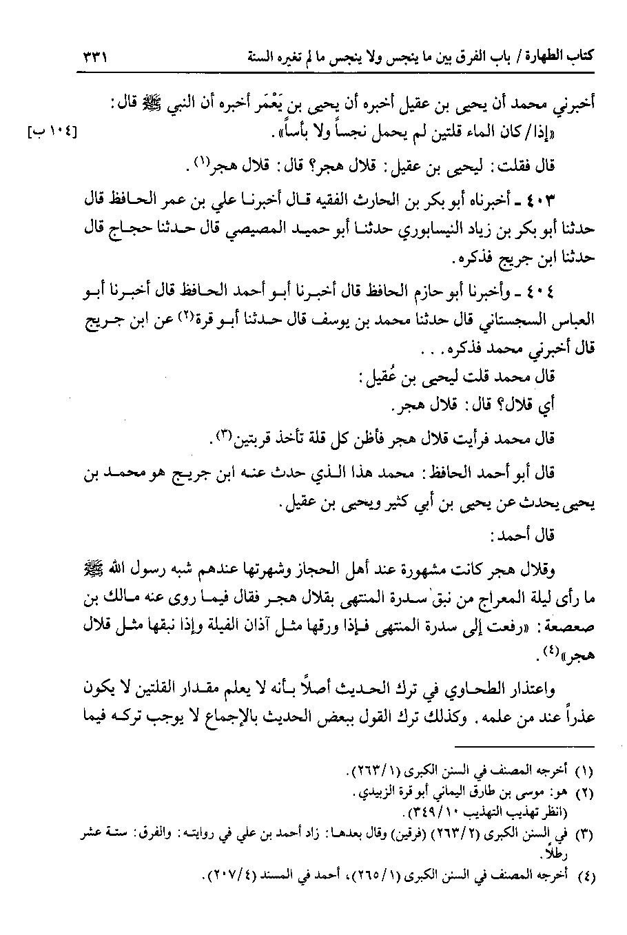 واعتذار الطحاوي في ترك الحديث أصلا بأنه لا يعلم مقدار القلتين لا يكون عذرا عند من علمه . وكذلك ترك القول ببعض الحديث بالإجماع لا يوجب تركه فيما