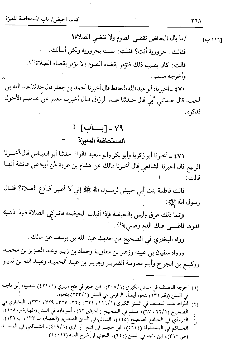 471 - أخبرنا أبو زكريا وأبو بكر وأبو سعيد قالوا : حدثنا أبو العباس قال أخبرنا الربيع قال أخبرنا الشافعي قال أخبرنا مالك عن هشام بن عروة عن أبيه عن عائشة أنها قالت : قالت فاطمة بنت أبي حبيش لرسول الله صلى الله عليه وسلم إني لا أطهر أفأدع الصلاة ؟ فقال رسول الله صلى الله عليه وسلم : إنما ذلك عرق وليس بالحيضة فإذا أقبلت الحيضة فاتركي الصلاة فإذا ذهب قدرها فاغسلي عنك الدم وصلي.