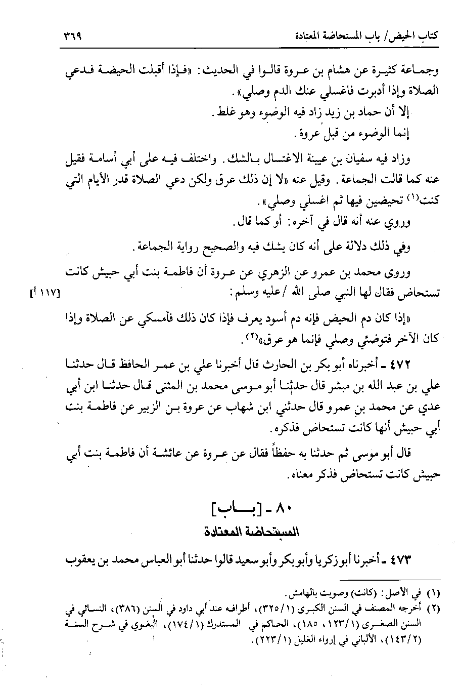 472 - أخبرناه أبو بكر بن الحارث قال أخبرنا علي بن عمر الحافظ قال حدثنا علي بن عبد الله بن مبشر قال حدثنا أبو موسى محمد بن المثنى قال حدثنا ابن أبي عدي عن محمد بن عمرو قال حدثني ابن شهاب عن عروة بن الزبير عن فاطمة بنت أبي حبيش أنها كانت تستحاض فذكره.