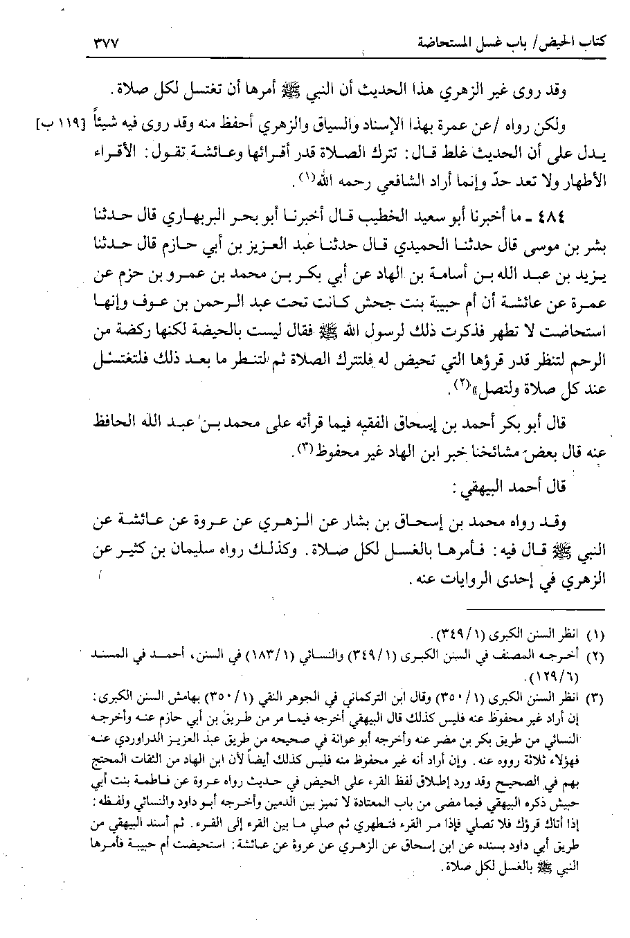 قال أحمد البيهقي : وقد رواه محمد بن إسحاق بن بشار عن الزهري عن عروة عن عائشة عن النبي صلى الله عليه وسلم قال فيه : فأمرها بالغسل لكل صلاة . وكذلك رواه سليمان بن كثير عن الزهري في إحدى الروايات عنه.