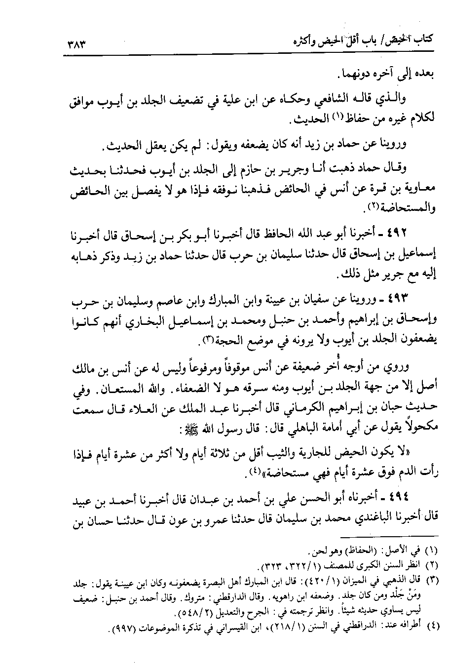 493 - وروينا عن سفيان بن عيينة وابن المبارك وابن عاصم وسليمان بن حرب وإسحاق بن إبراهيم وأحمد بن حنبل ومحمد بن إسماعيل البخاري أنهم كانوا يضعفون الجلد بن أيوب ولا يرونه في موضع الحجة.