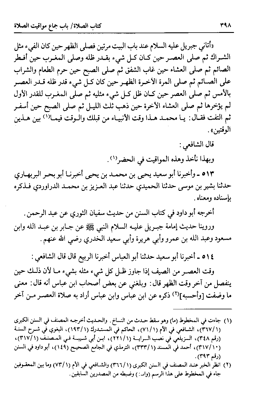 514 - أخبرنا أبو سعيد حدثنا أبو العباس أخبرنا الربيع قال قال الشافعي Y وقت العصر من الصيف إذا جاوز ظل كل شيء مثله بشيء ما لأن ذلك حين ينفصل من آخر وقت الظهر قال Y وبلغني عن بعض أصحاب ابن عباس أنه قال Y معنى ما وضفت وأحسبه ذكره عن ابن عباس وابن عباس أراد به صلاة العصر من آخر