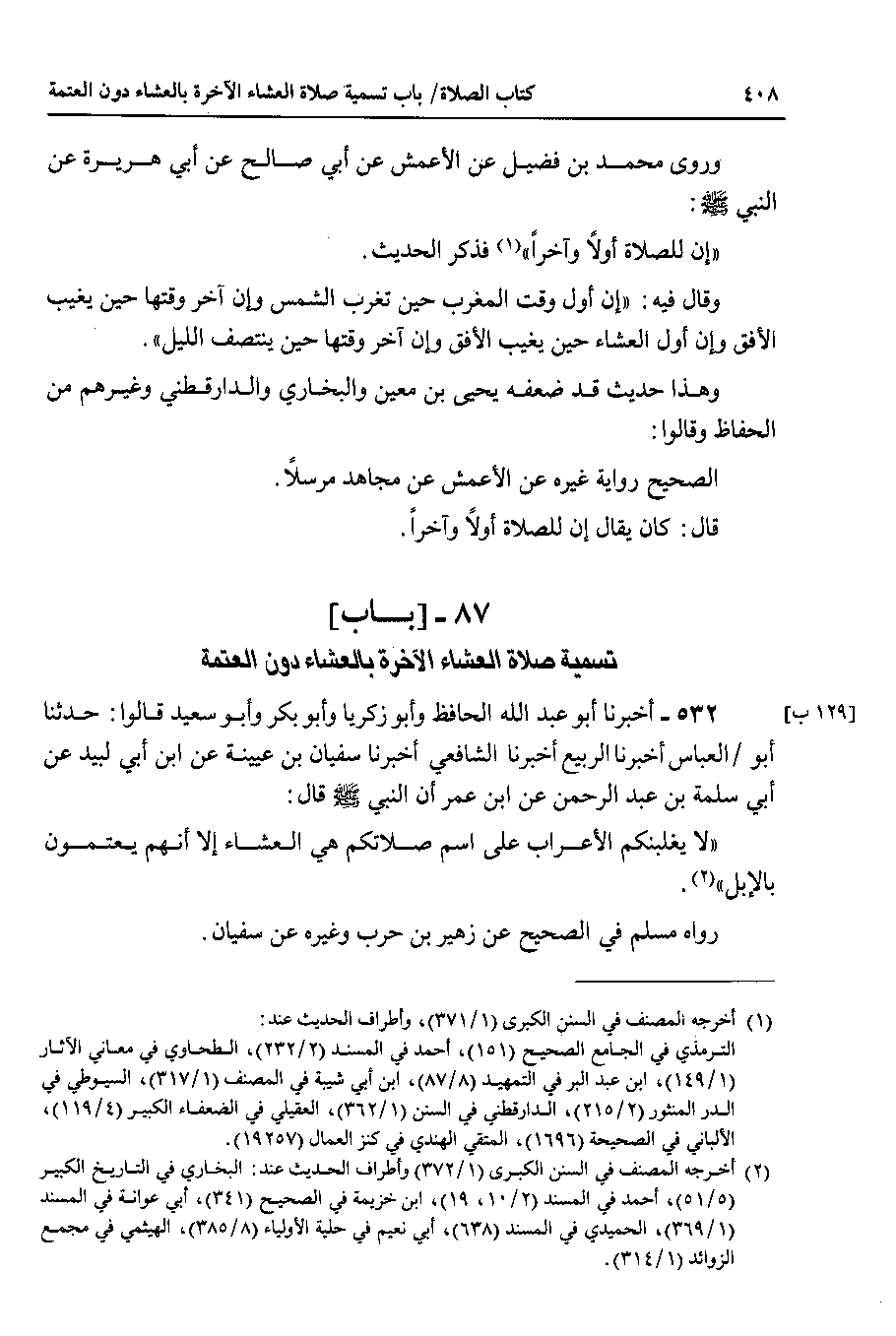 87 - باب تسمية صلاة العشاء الآخرة بالعشاء دون العتمة