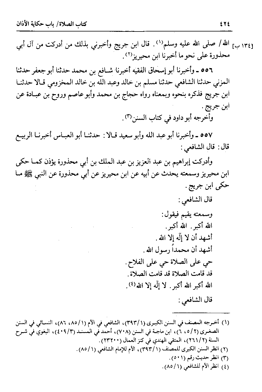 557 - وأخبرنا أبو عبد الله وأبو سعيد قالا : حدثنا أبو العباس أخبرنا الربيع قال : قال الشافعي : وأدركت إبراهيم بن عبد العزيز بن عبد الملك بن أبي محذورة يؤذن كما حكى ابن محيريز وسمعته يحدث عن أبيه عن ابن محيريز عن أبي محذورة عن النبي صلى الله عليه وسلم ما حكى ابن جريج.