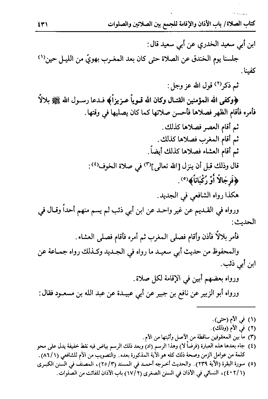 ورواه في القديم عن غير واحد عن ابن أبي ذئب لم يسم منهم أحدا وقال في الحديث : فأمر بلالا فأذن وأقام فصلى المغرب ثم أمره فأقام فصلى العشاء.